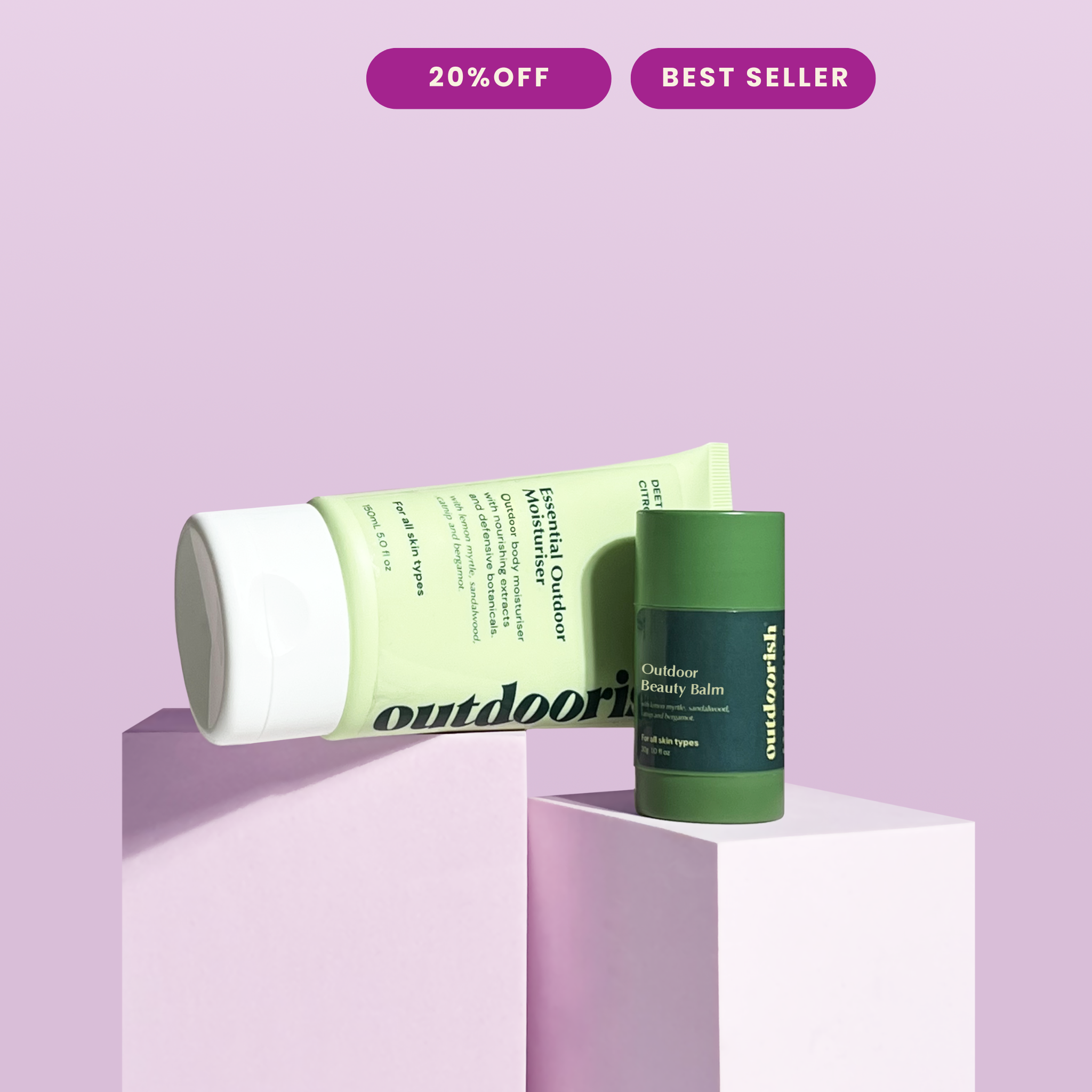 Our hero best sellers, Outdoor Beauty Balm and Essential Outdoor Moisturiser are now available in a bundle.