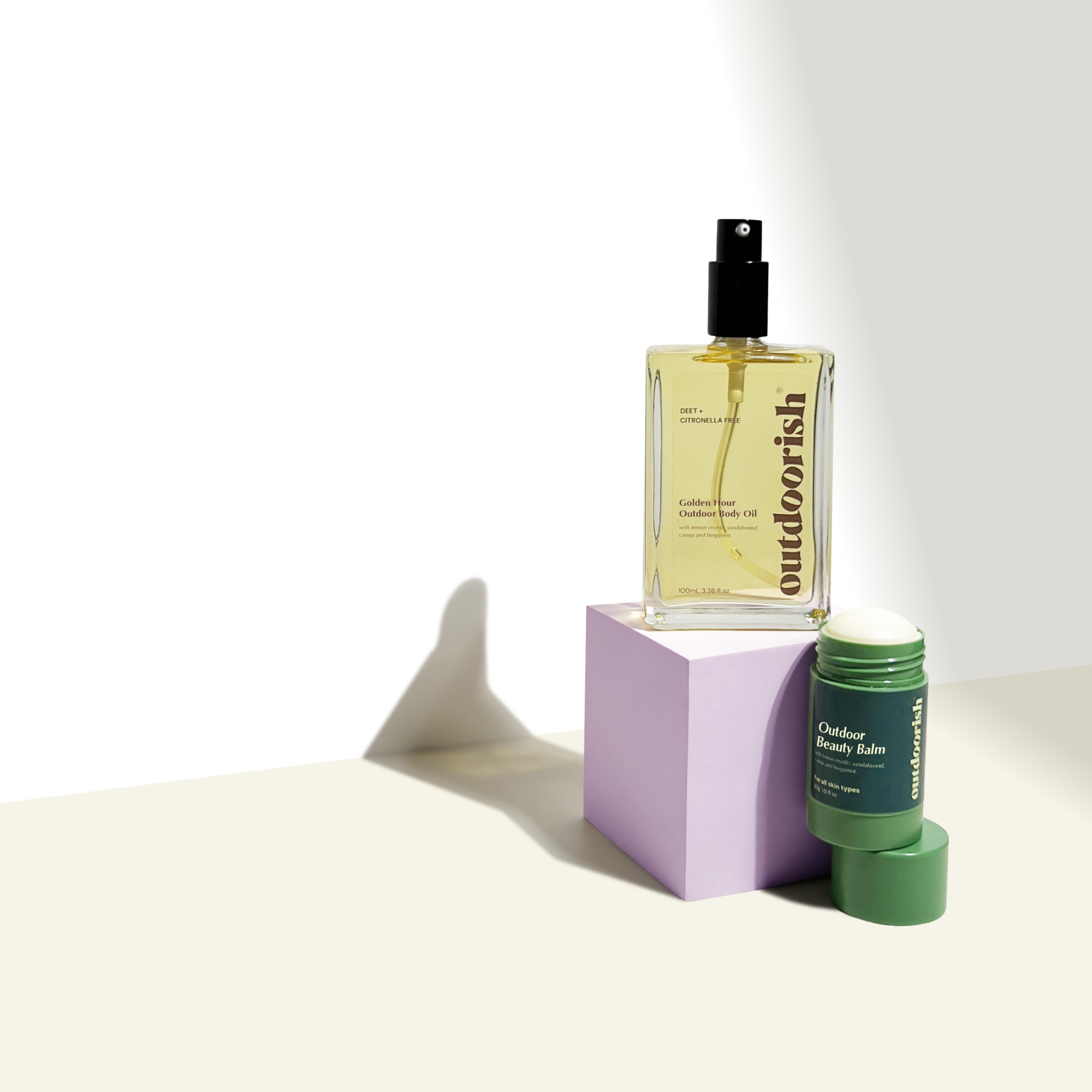 Golden Hour's best friends, Golden Hour Outdoor Body Oil and Outdoor Beauty Balm are now available in a bundle.